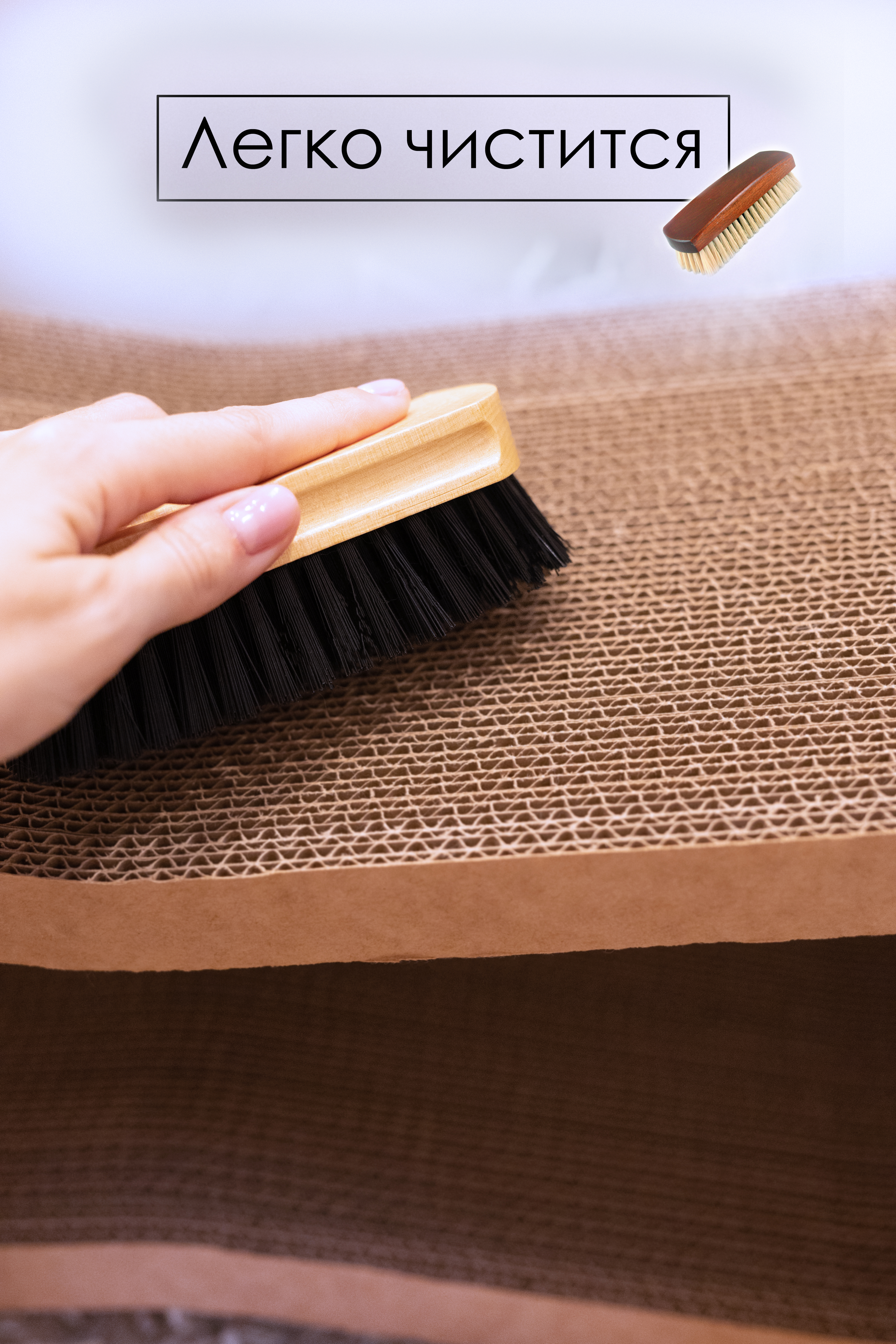 Когтеточку легко чистить обычной щёткой, а её стильный дизайн позволит ей гармонично вписаться в любой интерьер вашего дома. -