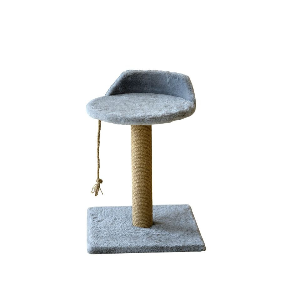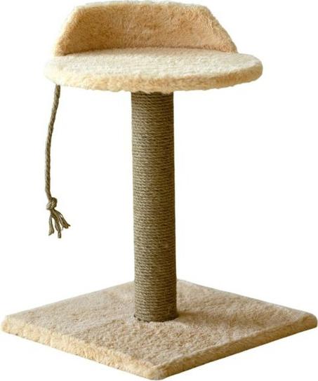 Когтеточка подойдет для котиков миниатюрных и средних пород. Сочетает в себе когтеточку-столбик с джутовым канатом, лежаночку и игрушку-кисточку. Основание - 35*35 см., высота - 53 см. Диаметр столбика 6 см. Обивка - искусственный мех, обмотка - джутовый канат.