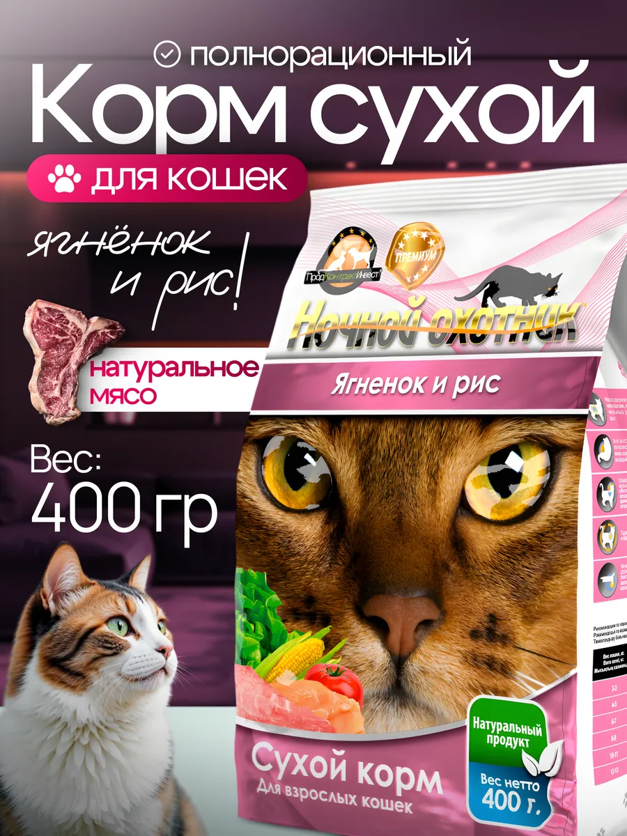 Ночной Охотник Ягненок и Рис для кошек 400г