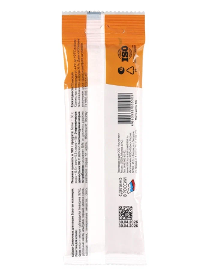 - Небольшая упаковка 30 г: Подходит для того, чтобы попробовать новый вкус или побаловать питомца без лишних объёмов. Легко помещается в карман или сумку.