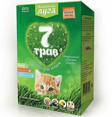 Травка Альпийские луга 7 трав, для кошек (лоток) 75 гр.