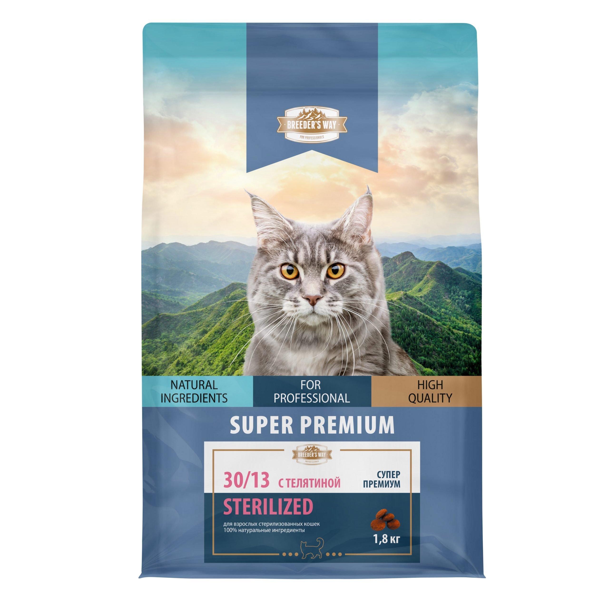 Breeder's Way Sterilized Полнорационный корм для стерилизованных кошек. телятина 1,8кг