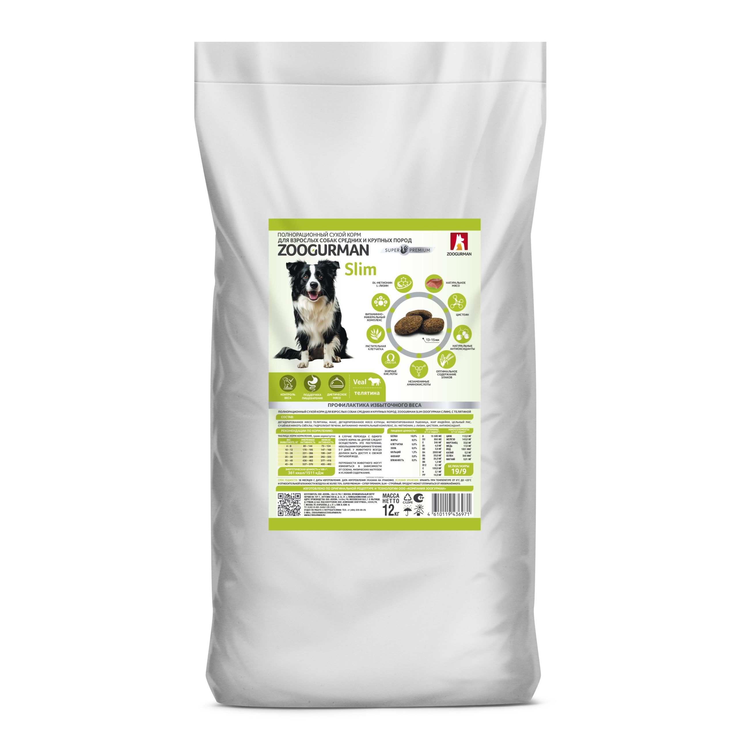 Zoogurman Slim сухой корм для собак средних и крупных пород, с телятиной - 12 кг