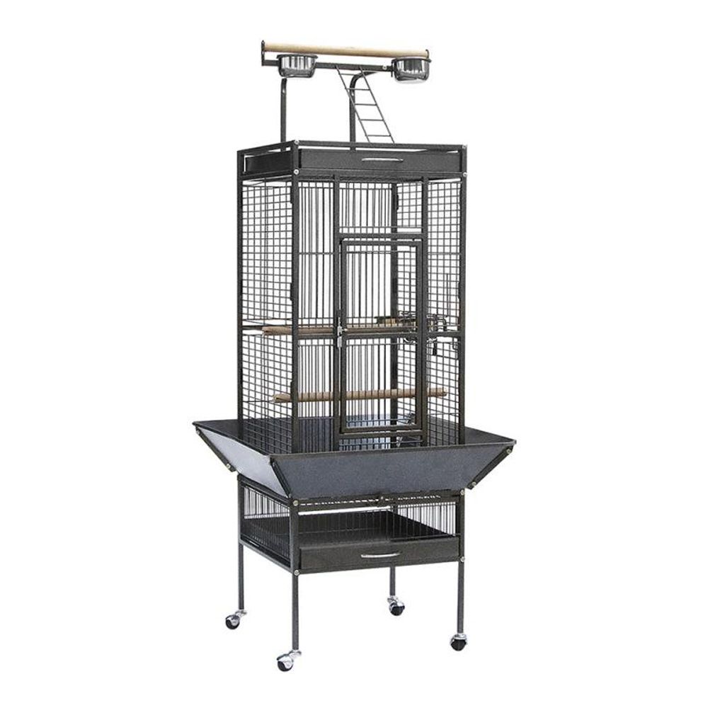 Вольер предназначен для содержания какаду, жако или других крупных и средних птиц. Верхний выгул. Удобный выдвижной поддон для уборки. Защитные крылья от мусора. Простой лаконичных дизайн впишется в любой интерьер. Вольер легко передвигать благодаря четырем колесикам.