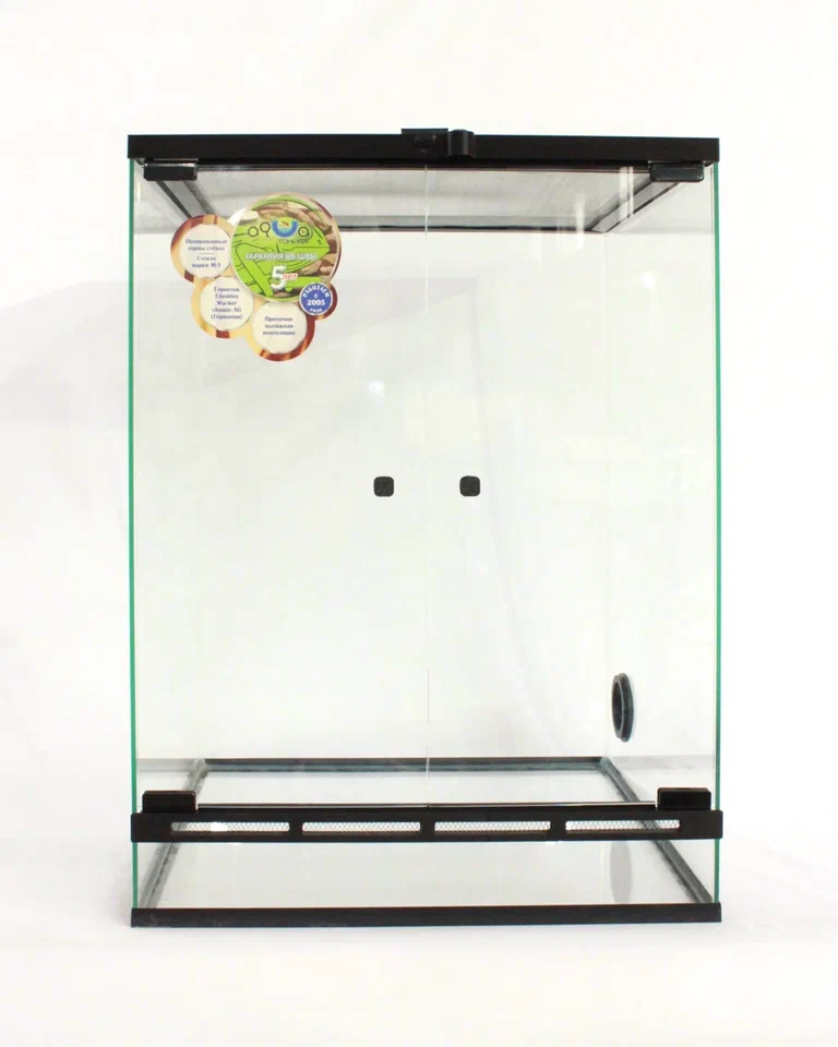 Конструкция выполнена из прочного силикатного стекла, обеспечивающего высокую прозрачность, долговечность и устойчивость к перепадам температуры. Чёткие линии и лаконичный дизайн позволяют террариуму гармонично вписаться в интерьер дома, офиса или образовательного пространства.
