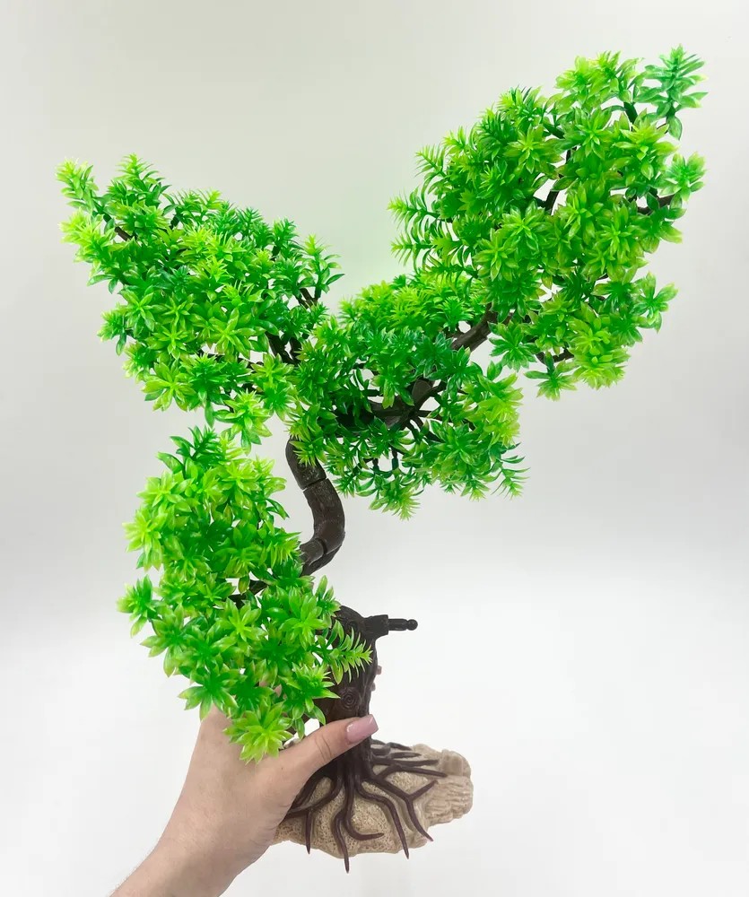 Грот выполнен в форме элегантного дерева бонсай с тщательной проработкой деталей, создавая атмосферу умиротворения и восточной эстетики в вашем аквариуме.