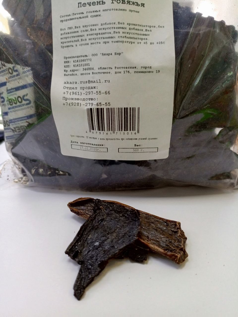Лакомства AKARA BAR Печень говяжья 500г