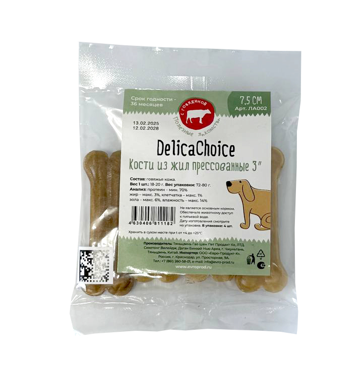 Кость жильная 3" 7,5см Делика Чойс 4шт