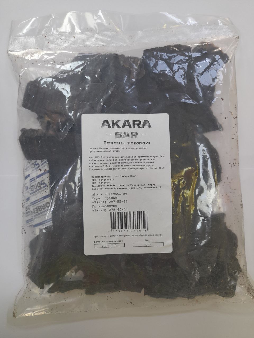 Лакомства AKARA BAR Печень говяжья 500г