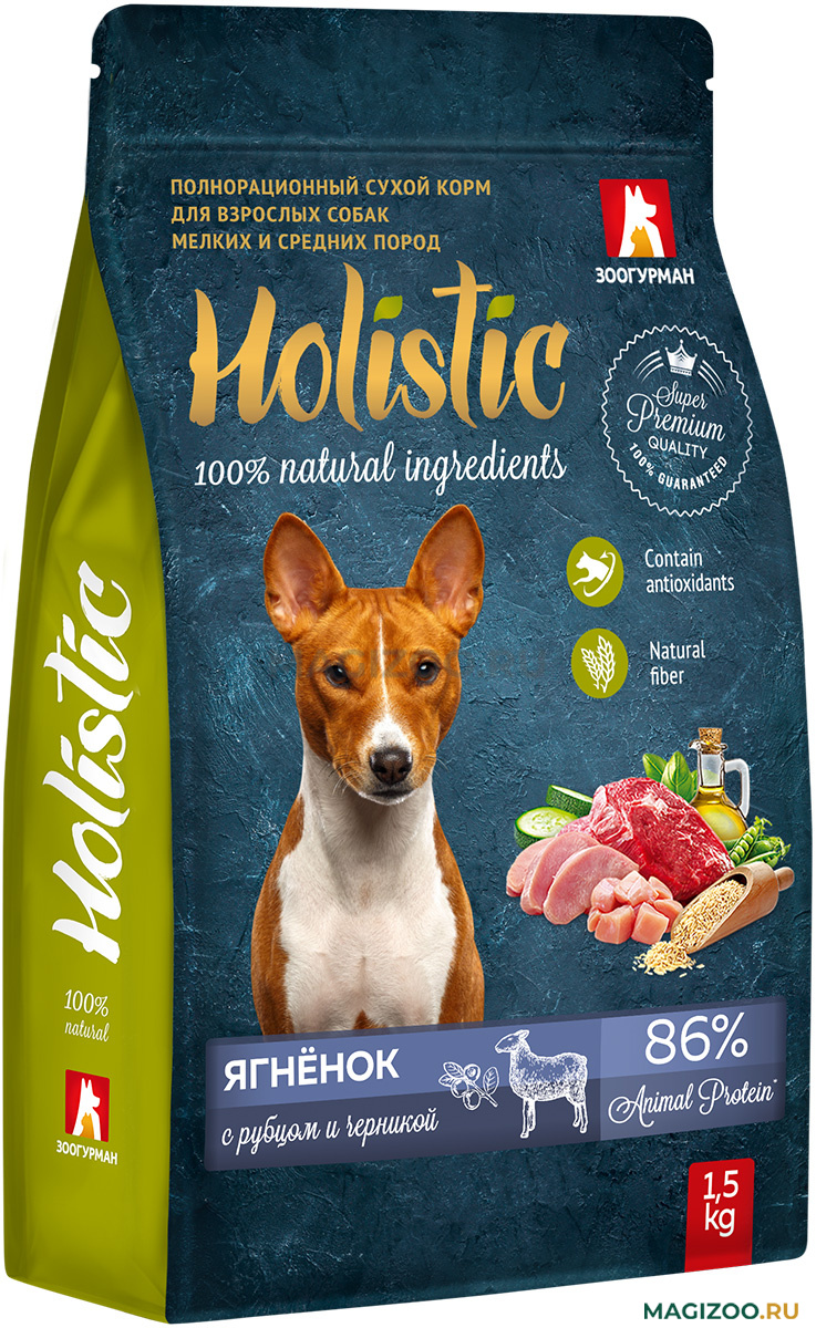 Zoogurman Holistic Ягненок с рубцом и черникой для собак малых и средних пород собак 1,5кг