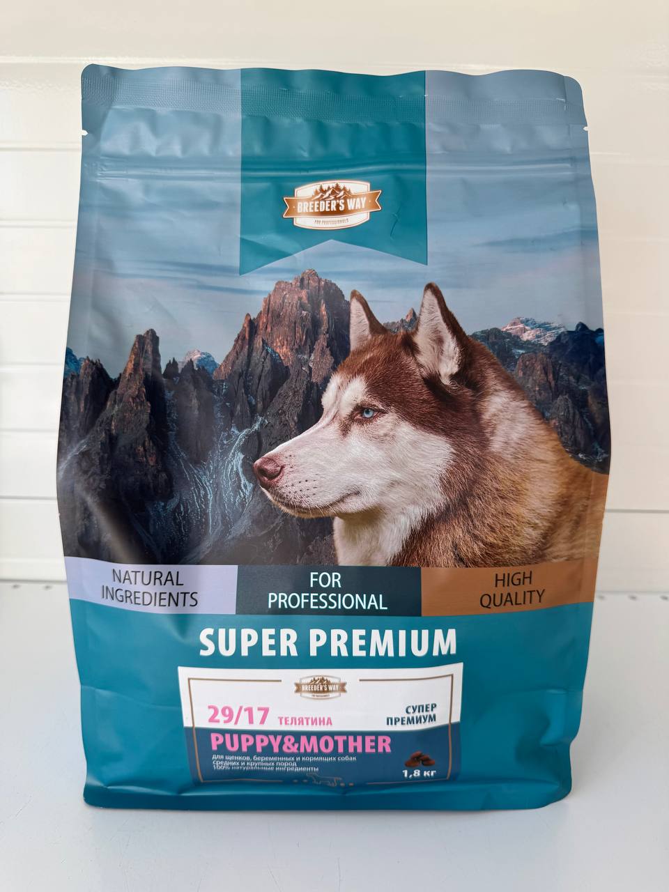 Breeder's Way Puppy&Mother Телятина для щенков средних и крупных пород собак 1,8кг
