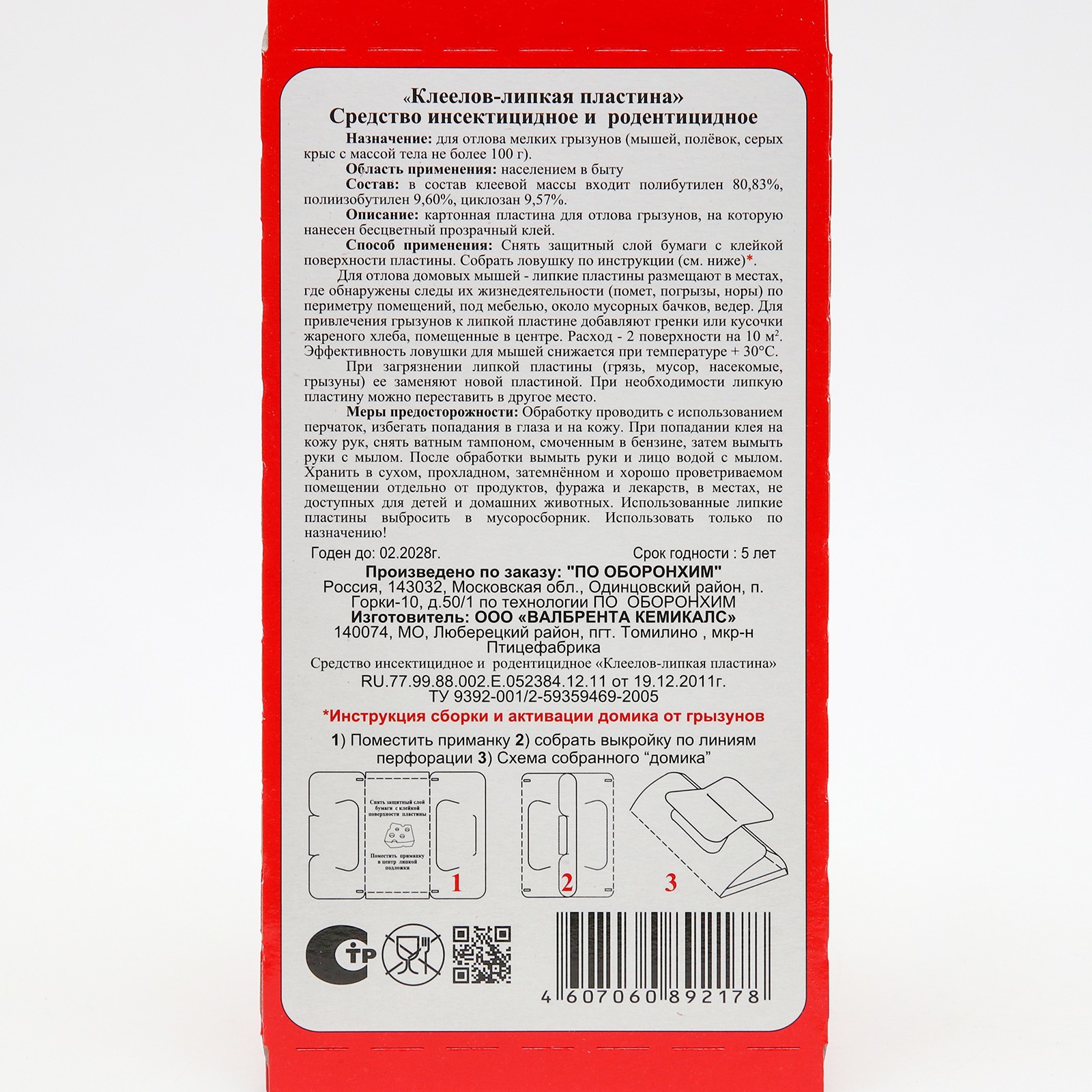 Клеевая ловушка для отлова мелких грызунов (мышей, полевок, серых крыс с массой тела до 100г)