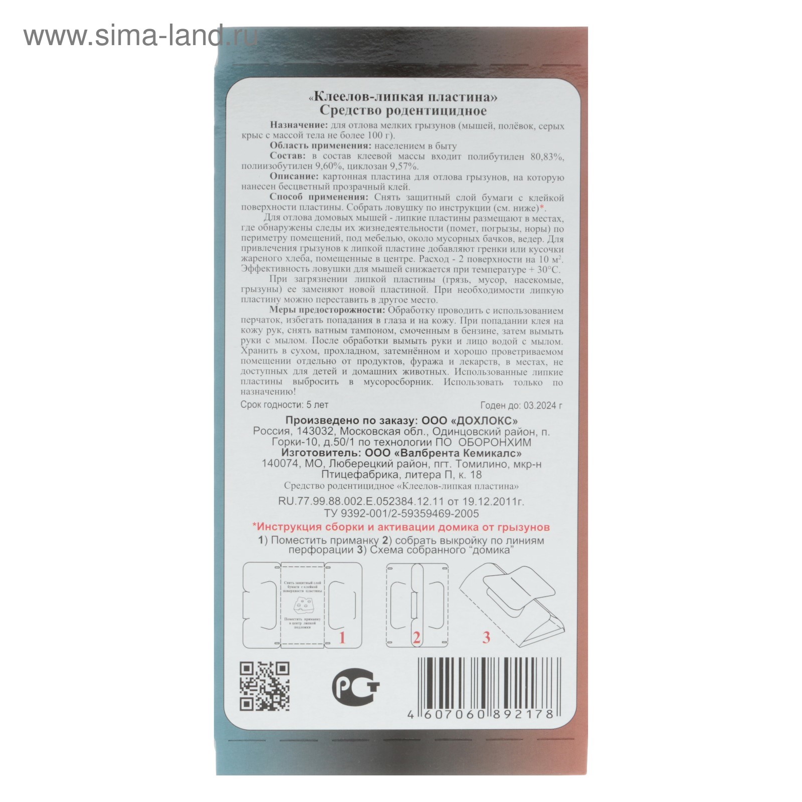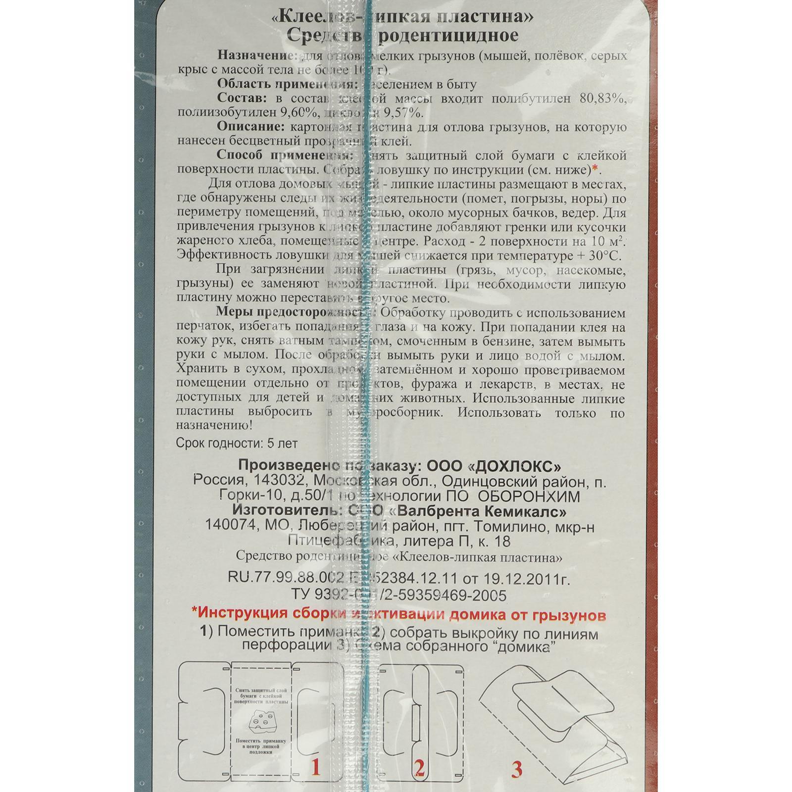 Ловушка представляет собой картонный домик со входами для грызунов с двух сторон и полом в виде клейкой пластины. Для использования домик нужно сложить по линиям сгиба и снять защитный слой с липкой основы. Установить в укромном месте на линии передвижения вредителей.