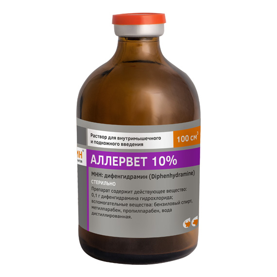 Препарат применяют крупному рогатому скоту и свиньям для профилактики и облегчения аллергических реакций, при сывороточной болезни, анафилаксии, анафилактическом шоке, зудящем и атопическом дерматите, аллергических конъюнктивитах, ринитах, полиартритах, суставном и мышечном ревматизме, для уменьшения реакции при переливании крови и кровезамещающих жидкостей, для предупреждения рвоты, как успокаивающее средство в сочетании со снотворными, в комплексной терапии при заболеваниях респираторной системы, желудочно-кишечного и мочеполового тракта, для премедикации перед общей анестезией. Оказывает местноанестизирующее действие, расслабляет гладкую мускулатуру. Оказывает снотворное, седативное, противорвотное действие. Препарат представляет собой стерильную, прозрачную, бесцветную жидкость.