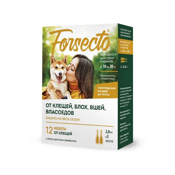 капли Forsecto собаки и щенки 10-20кг 2пип 2,0мл