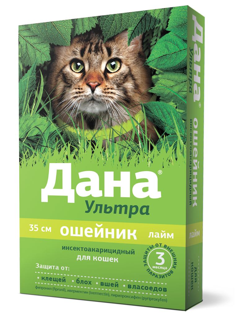 Дана Ультра Ошейник против блох, гельминтов для кошек 35 см (зеленый)