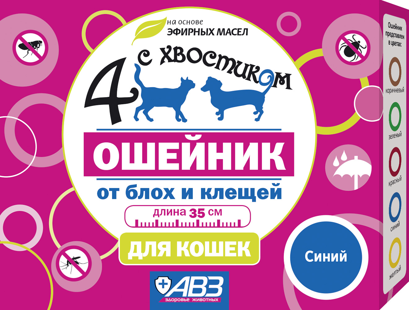 Ошейник Четыре с хвостиком 35см Синий против блох и клещей для кошек