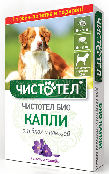Капли репеллентные Чистотел БИО с лавандой, для средних и крупных собак, 2*2,5 мл