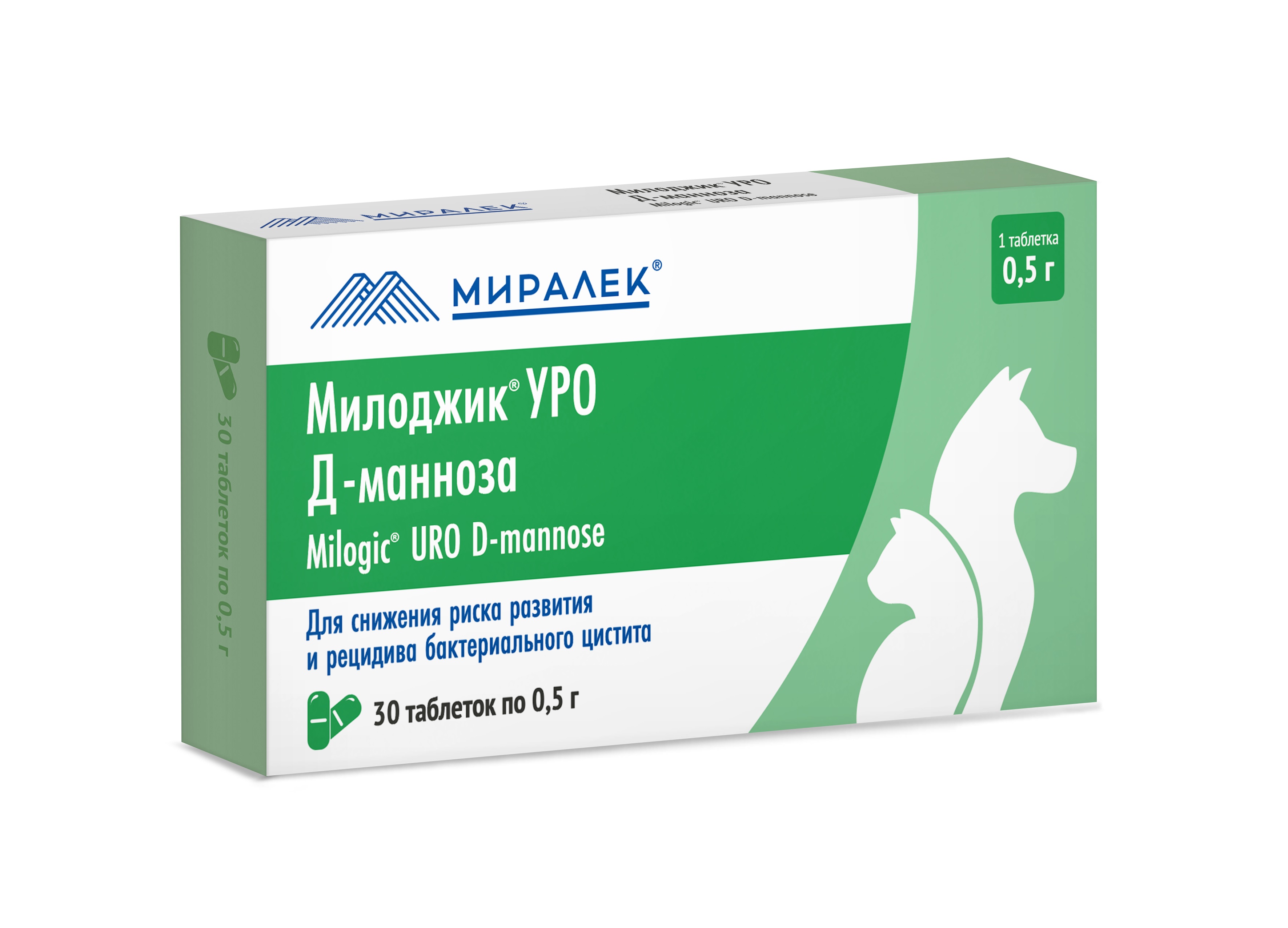 Милоджик УРО Д-манноза+клюква 0,5г 30табл д/мелких собак и кошек