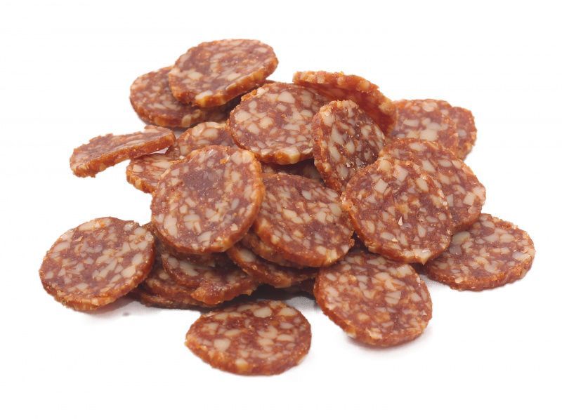 Колбасный двор для собак TitBit – это высококачественные мясные деликатесы, которые отлично подходят в качестве поощрения животного или просто побаловать своего любимца. Содержание мяса и мясных субпродуктов 92%. Не содержат соль и искусственных компонентов. Единственные мясные колбасы, представленные в виде нарезки!