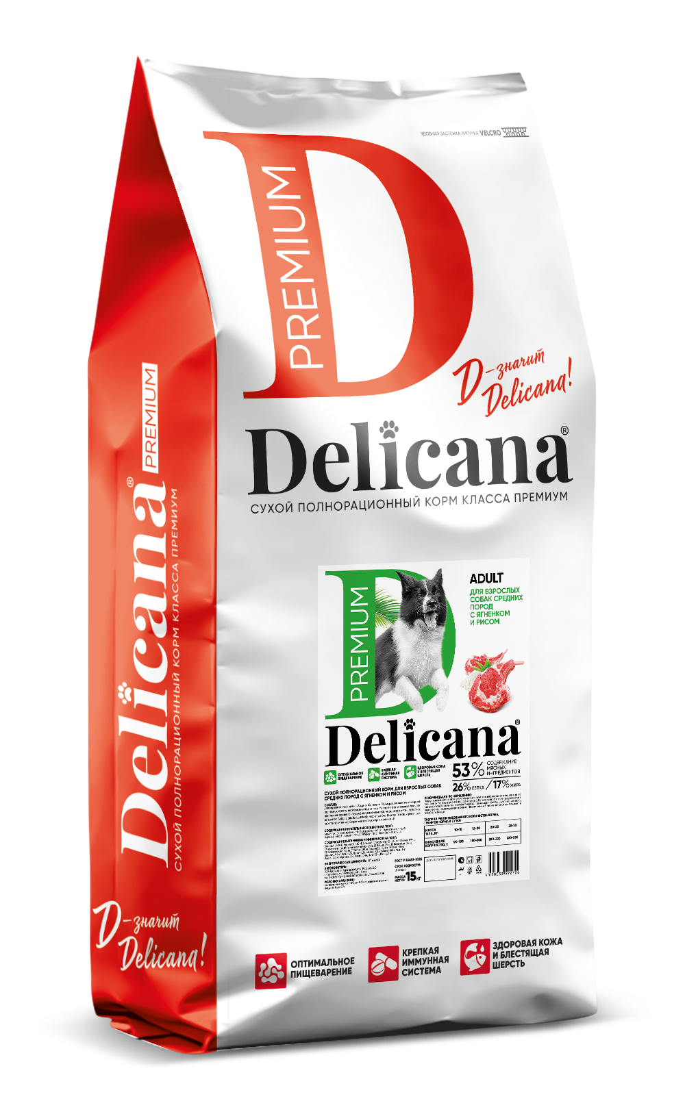 Delicana Ягненок с рисом для собак средних пород 15 кг