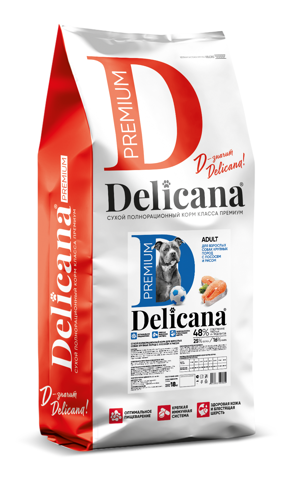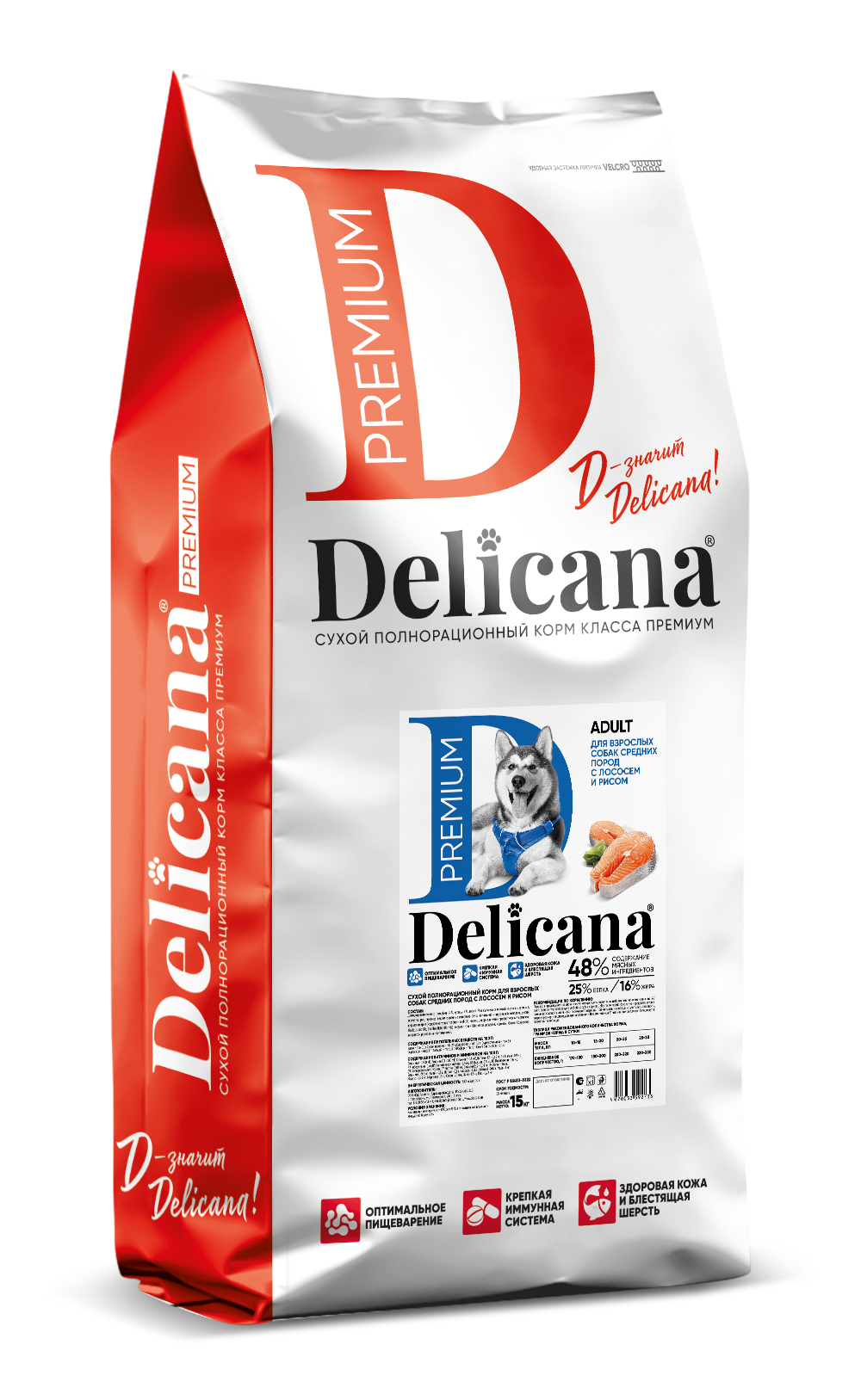 Delicana Лосось с рисом для собак средних пород 15 кг
