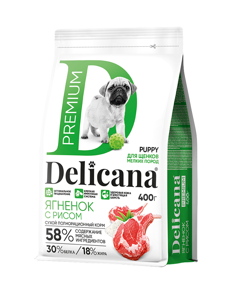 Delicana Ягненок с рисом для щенков 400г