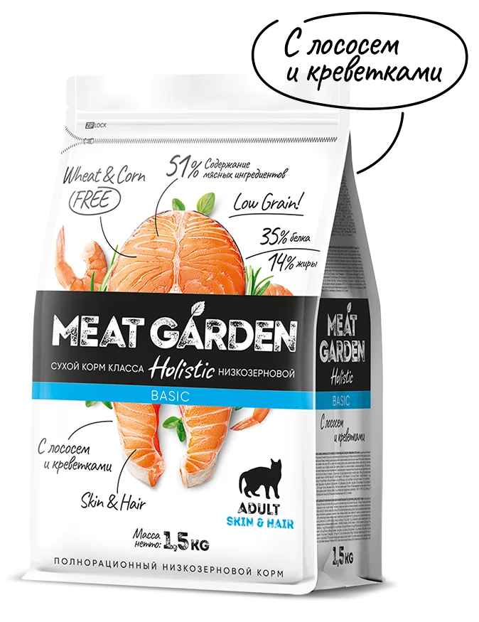MEAT GARDEN BASIC Лосось и креветка корм для кошек 1,5кг