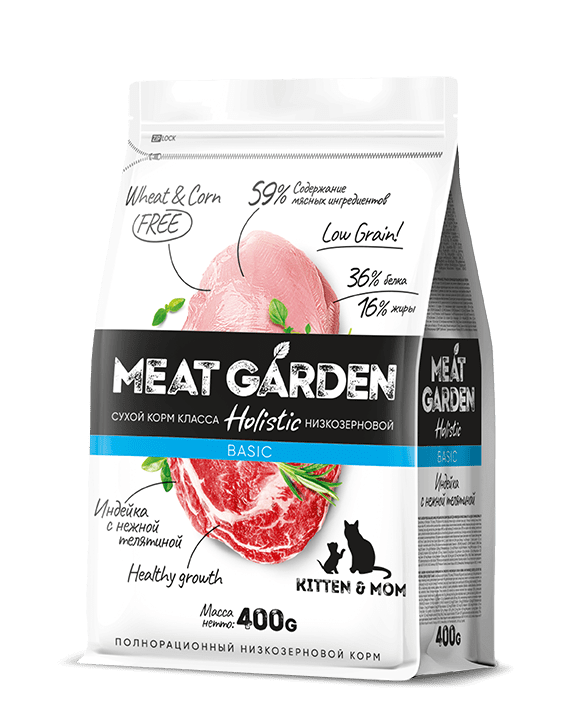 MEAT GARDEN BASIC Индейка и телятина для котят и беременных, кормящих кошек 400г