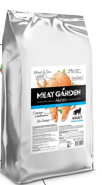 MEAT GARDEN BASIC Лосось и креветка корм для кошек 8кг